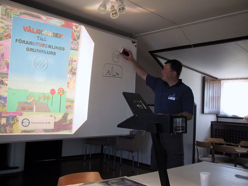 Grundkursen inleds med genomgång av dagens aktiviteter, syfte med kursen samt en teoretisk genomgång, som i stora drag går igenom hur en bil fungerar och reagerar i olika situationer. Instruktörerna går igenom vad alla olika varianter av elektroniska hjälpmedel heter, och hur de fungerar. Lite fastnar faktiskt, trots att man bara vill ut och köra bil! Kontentan är att dagens bilar är oerhört mycket säkrare än äldre bilar, vilket kanske inte kommer som en överaskning. Samtidigt har tekniken i vissa fall svagheter, som är viktiga att känna till.