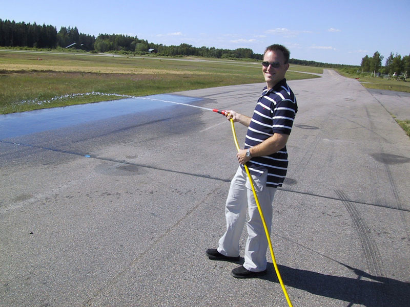 Nu var det dags för broms i kurva, med och utan vatten. Lasse hade