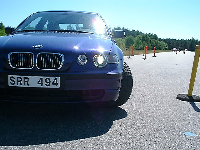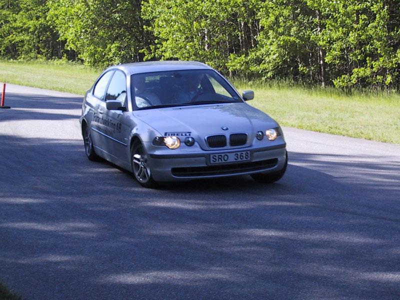 Äntligen är det dags att köra bil! Passande med en bromsövning då. Snabb som man är så "råkade" jag hamna i en 325 ti. Anders instruerade om att trampa bromsen i BOTTEN med full kraft och inte hålla på och fega. Om och om igen gjorde vi tvärnitar från 100 km/h. En intressant upptäckt var att man inte bara skulle trampa så hårt så att ABS-bromsarna började