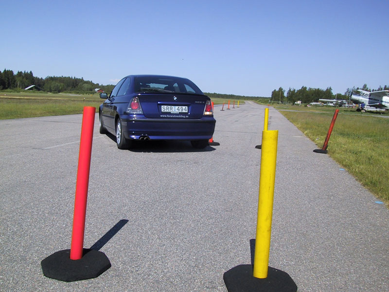 Ett av de mest minnesvärda tillfällena under dagen var när vi lastade in oss fyra personer i en 318 iA Touring och Anders dånade genom undanmanöverprovet i 120 blås. Utan att bromsa! Efter den upplevelsen så förstår man vad DSC (antisladd) är för något, och att den mycket väl kan vara oumbärlig i en kritisk situation. Många tror att DSC bara kommer till invändning på snö och is, men DSC gör nästan magiska korrigeringar av bilens framfart även på torr asfalt. När man trodde att Anders förlorat kontrollen över bilen, grep DSC in och rätade upp bilen. Att det går så snabbt och odramatiskt genom undanmanöverprovet är minst sagt förvånande. Utan antisladd är frågan bara HUR långt ut i skogen vi hade landat....